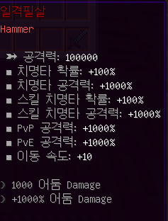 - 직접 인첸트하여 원하는 인첸트옵션을 붙여서 사용할수 있습니다.